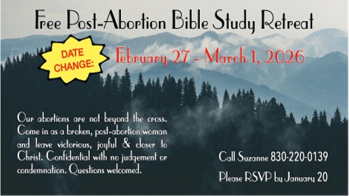 - February 27-March 1: Post-Abortion Bible Study Retreat